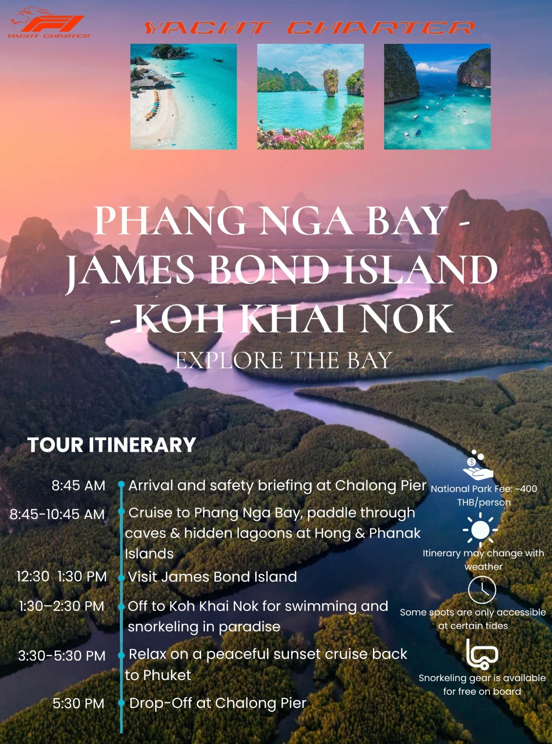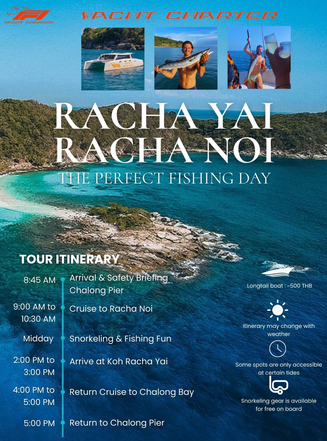 Окончательное решение о маршруте принимает капитан чартерной лодки.Пассажиры обязаны следовать инструкциям по безопасности, предоставленным профессиональным экипажем.